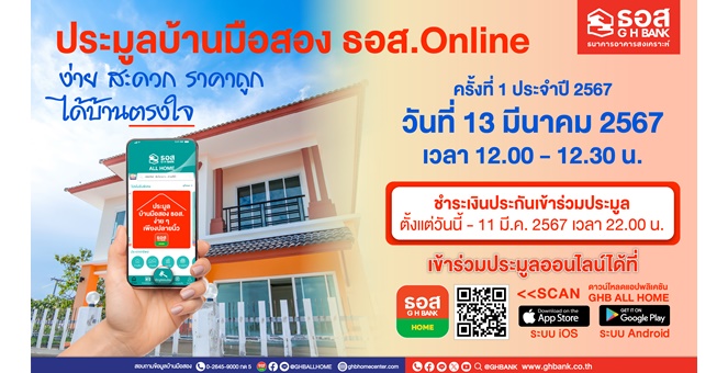 star_borderModal Upgrade PackageModal Upgrade Packageกลับมาแล้ว!! ครั้งแรกของปีกับงานประมูลบ้านมือสอง ธอส. ออนไลน์ วันพุธที่ 13 มี.ค. 2567 นี้6 มี.ค. 2567 10:29 น.