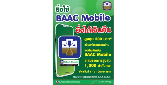 star_borderModal Upgrade PackageModal Upgrade Packageธ.ก.ส. ชวนใช้ BAAC Mobile ยิ่งใช้ ยิ่งได้เงินคืนสูงสุด 500 บาท6 มี.ค. 2567 11:59 น.