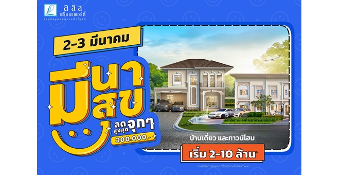 star_borderModal Upgrade PackageModal Upgrade Package“มีนา มีสุข ลดจุกๆ สูงสุด 3 แสน” 2-3 มี.ค.นี้ ลลิล พร็อพเพอร์ตี้ มอบโปรโมชั่นดีๆที่คนอยากมีบ้านเห็นแล้วต้องยิ้ม29 ก.พ. 2567 15:12 น.