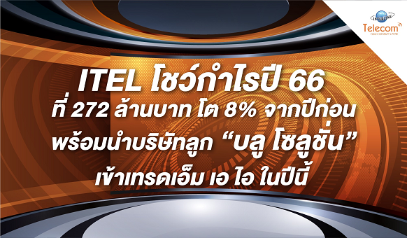 ITEL โชว์กำไรปี 66 ที่ 272 ล้านบาท โต 8% จากปีก่อน พร้อมนำบริษัทลูก “บลู โซลูชั่น” เข้าเทรดเอ็ม เอ ไอ ในปีนี้