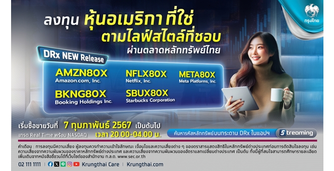 กรุงไทยปลื้มกระแส DRx 5 หุ้นไลฟ์สไตล์ระดับโลกมาแรง มีมูลค่าตลาดราว 90 ล้านบาทใน 6 วันแรก ตอกย้ำมืออาชีพคัดหุ้นเด่น ตอบโจทย์ผู้ลงทุน