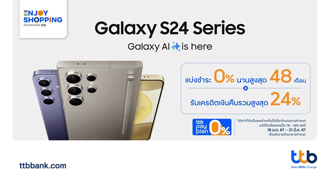 star_borderModal Upgrade PackageModal Upgrade Packageบัตรเครดิต ttb จัดให้ เมื่อซื้อ Galaxy S24 Series แบ่งชำระ 0% นานสูงสุด 48 เดือน พร้อมรับเครดิตเงินคืนรวมสูงสุด 24%19 ม.ค. 2567 09:57 น.