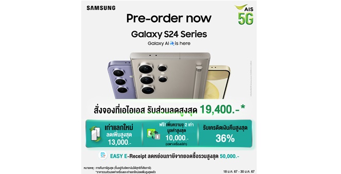 • AIS พร้อมให้ทุกคนเป็นเจ้าของ AI Phone แห่งปี Samsung Galaxy S24 Series กับสุดยอดข้อเสนอและสิทธิพิเศษที่ดีที่สุด