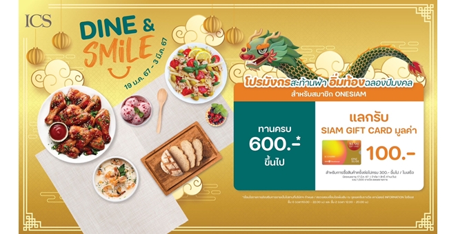 star_borderModal Upgrade PackageModal Upgrade Packageไอซีเอส จัดโปรฯ เอาใจนักชิมอีกครั้ง! กับแคมเปญ “ICS DINE & SMILE” โปรมังกรสะท้านฟ้า อิ่มท้องฉลองปีมงคลรับประทานอาหารและเครื่องดื่มครบตามยอดที่กำหนดแลกรับ SIAM GIFT CARD มูลค่ารวมกว่า 1.5 แสนบาท! ตั้งแต่วันที่ 19 ม.ค. – 3 มี.ค. 256717 ม.ค. 2567 15:19 น.