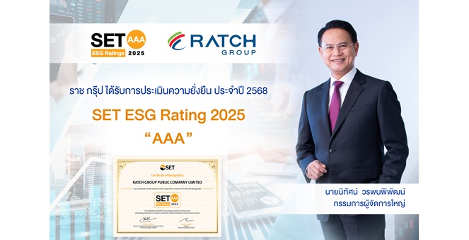 star_borderModal Upgrade PackageModal Upgrade PackageRATCH รักษาอันดับหุ้นยั่งยืนต่อเนื่อง SET ESG Ratings ปี 2568 ที่ระดับ AAA และเป็นหลักทรัพย์ในดัชนี SETESG24 ธ.ค. 2568 16:22 น.