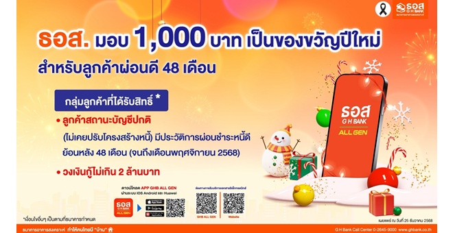 star_borderModal Upgrade PackageModal Upgrade Packageธอส. มอบของขวัญปีใหม่ตอบแทนลูกค้าผ่อนชำระดี 48 เดือน รับเงิน 1,000 บาท25 ธ.ค. 2568 11:42 น.