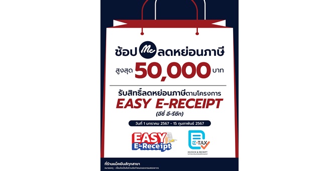star_borderModal Upgrade PackageModal Upgrade Package“แม็คยีนส์” ร่วม “Easy E-Receipt 2024” ชวนช้อป ลดหย่อนภาษีสูงสุด 50,000 บาท ทุกสาขาทั่วไทย4 ม.ค. 2567 15:05 น.