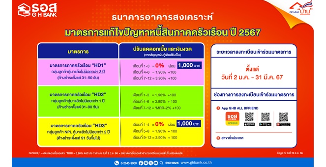 • ธอส. ขานรับนโยบายรัฐบาล จัดทำ 3 มาตรการแก้ไขปัญหาหนี้สินภาคครัวเรือน ปี 2567
