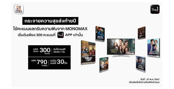 • คะแนน The 1 แลกดูหนัง-ซีรีส์เรื่องดังทาง MONOMAX สุดคุ้ม!!! นาน 30 วัน
