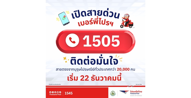 star_borderModal Upgrade PackageModal Upgrade Packageเปิดสายด่วน เบอร์พี่ไปรฯ “1505” ติดต่อทันใจ สายตรงบุรุษไปรษณีย์ทั่วประเทศกว่า 20,000 คน เริ่ม 22 ธันวาคมนี้20 ธ.ค. 2566 13:17 น.