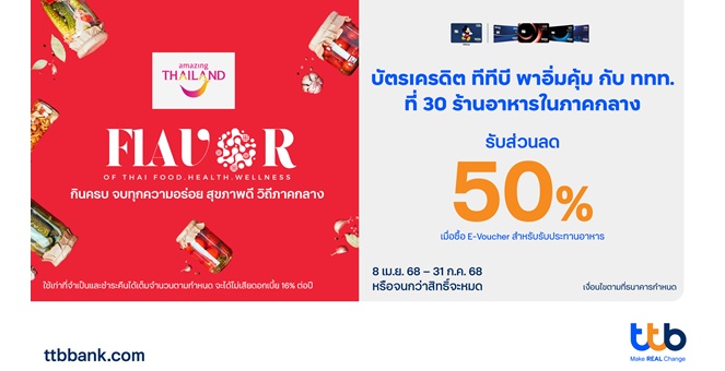 star_borderModal Upgrade PackageModal Upgrade Packageบัตรเครดิต ทีทีบี จับมือ ททท. ชวนสายกินร่วมสัมผัสเสน่ห์อาหารไทยภาคกลาง รับสิทธิ์อิ่มคุ้มด้วยส่วนลด 50% กว่า 30 ร้านอาหาร15 พ.ค. 2568 17:14 น.