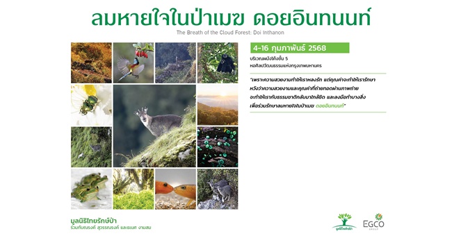 EGCO Group โดย มูลนิธิไทยรักษ์ป่า ชวนมาสัมผัสป่าต้นน้ำและสัตว์ป่าบนดอยอินทนนท์ ในนิทรรศการภาพถ่าย “ลมหายใจในป่าเมฆ ดอยอินทนนท์” ณ หอศิลปกรุงเทพฯ 4-16 ก.พ.68