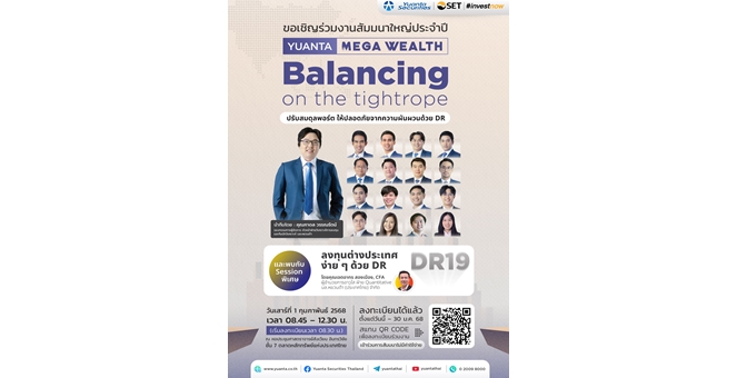 star_borderModal Upgrade PackageModal Upgrade Packageหยวนต้า ขอเชิญร่วมงานสัมมนา “Yuanta Mega Wealth 2025 : ปรับสมดุลพอร์ตให้ปลอดภัยจากความผันผวน ด้วย DR (Balancing on the tightrope)”27 ม.ค. 2568 14:51 น.