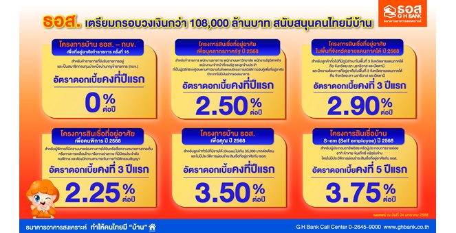 star_borderModal Upgrade PackageModal Upgrade Packageธอส. เตรียมกรอบวงเงินกว่า 108,000 ล้านบาท สนับสนุนคนไทยมีบ้านเป็นของตนเอง จัดทำสินเชื่อบ้านอัตราดอกเบี้ยต่ำ เริ่มต้น 0% นาน 1 ปี24 ม.ค. 2568 14:34 น.