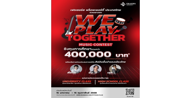 star_borderModal Upgrade PackageModal Upgrade Package‘เฟรเซอร์ส พร็อพเพอร์ตี้ ประเทศไทย’ เปิดพื้นที่ของคนรุ่นใหม่ร่วมสร้างประสบการณ์สุดอบอุ่น กับการประกวดวงดนตรี โครงการ Frasers Property presents “We Play Together...ร้องด้วยกัน เล่นด้วยกัน อบอุ่นไปด้วยกัน”20 ม.ค. 2568 16:14 น.