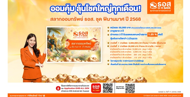 star_borderModal Upgrade PackageModal Upgrade Packageตรุษจีนนี้ ! ซื้อ “สลากออมทรัพย์ ธอส. ชุดพิมานมาศ ปี 2568” มอบเป็นอั่งเปา รับผลตอบแทนสูง พร้อมลุ้นรางวัลใหญ่ทุกเดือนตลอด 24 งวด เปิดจำหน่ายวันที่ 20 มกราคม 2568 เป็นต้นไป17 ม.ค. 2568 10:55 น.