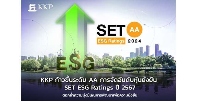 • KKP ก้าวขึ้นระดับ AA การจัดอันดับหุ้นยั่งยืน SET ESG Ratings ปี 2567 ตอกย้ำความมุ่งมั่นในการพัฒนาเพื่อความยั่งยืน
