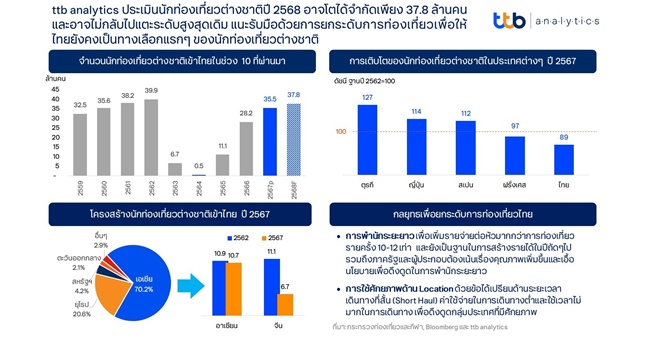 • ttb analytics ประเมินนักท่องเที่ยวต่างชาติปี 2568 อาจโตได้จำกัดเพียง 37.8 ล้านคน