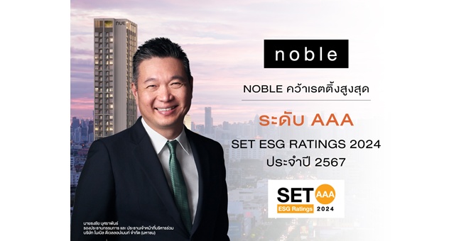 NOBLE คว้าเรทติ้งสูงสุด ระดับ “AAA” SET ESG Ratings ประจำปี 2567 ยกระดับองค์กรสู่ความยั่งยืนภายในแนวคิด “Live Different” ตามกรอบ ESG