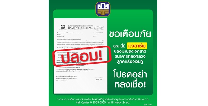 star_borderModal Upgrade PackageModal Upgrade Packageธ.ก.ส. เตือนภัย! ระวังมิจฉาชีพทำหนังสือแอบอ้างเป็นธนาคาร เพื่อหลอกให้โอนเงิน20 ธ.ค. 2567 10:24 น.