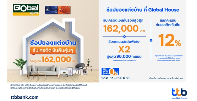 star_borderModal Upgrade PackageModal Upgrade Packageบัตรเครดิต ttb Global House มอบโปรโมชันสุดคุ้มสำหรับคนรักบ้าน รับเครดิตเงินคืนรวมสูงสุด 162,000 บาท19 ธ.ค. 2567 12:08 น.