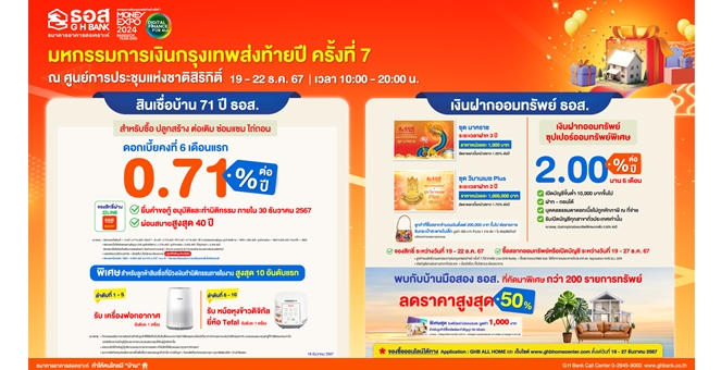 star_borderModal Upgrade PackageModal Upgrade Packageธอส. จัดทัพโปรโมชันเด็ดร่วมงานมหกรรมการเงินกรุงเทพส่งท้ายปี ครั้งที่ 7 พบสินเชื่อบ้านอัตราดอกเบี้ยต่ำเพียง 0.71% ต่อปี พร้อมเงินฝากอัตราดอกเบี้ยสูง 2.00% ต่อปี18 ธ.ค. 2567 11:44 น.