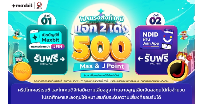 star_borderModal Upgrade PackageModal Upgrade PackageMaxbit และ JFIN จับมือเปิดตัวแคมเปญพิเศษ แจกหนักส่งท้ายปี!18 ธ.ค. 2567 13:54 น.