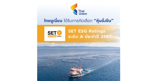 ไทยยูเนี่ยน ได้รับคัดเลือกเป็น “หุ้นยั่งยืน SET ESG Rating” ระดับ A จาก ตลท.