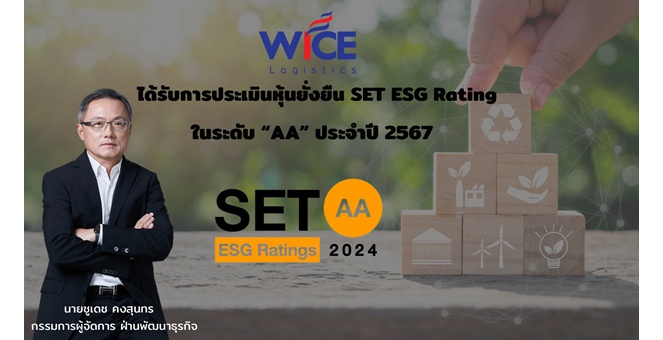 WICE คว้า SET ESG Ratings ที่ระดับ AA ประจำปี 2567 พร้อมยกระดับการดำเนินงานภายใต้กรอบ ESG ในทุกมิติ