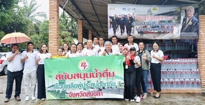 พีที จับมือกรมแรงงานจังหวัด กระทรวงแรงงาน ช่วยน้ำท่วมภาคใต้