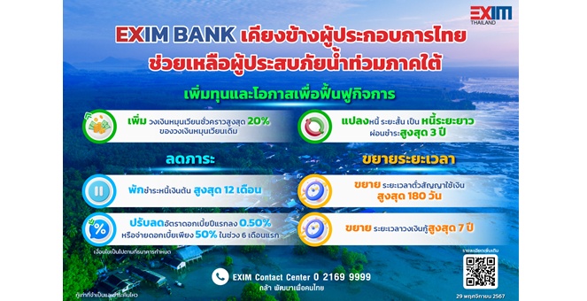 star_borderModal Upgrade PackageModal Upgrade PackageEXIM BANK ออกมาตรการ “เพิ่มทุน-ลดภาระ-ขยายระยะเวลา” ช่วยเหลือลูกค้าที่ได้รับผลกระทบจากอุทกภัยในภาคใต้29 พ.ย. 2567 16:06 น.