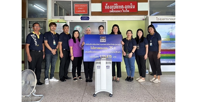 BAM มอบเครื่องฟอกอากาศให้กับโรงพยาบาลเขตพื้นที่ภาคกลาง ในโอกาสครบรอบ 25 ปี มอบ 25 โรงพยาบาลทั่วประเทศ