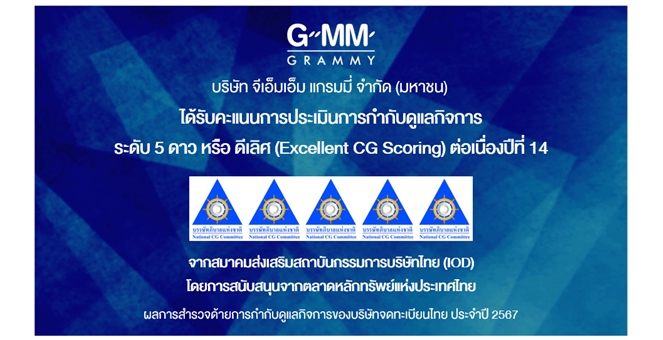 star_borderModal Upgrade PackageModal Upgrade PackageGRAMMY ได้รับคะแนนการประเมินการกำกับดูแลกิจการในระดับ 5 ดาว หรือ “ดีเลิศ” ต่อเนื่องเป็นปีที่ 14 สะท้อนถึงการกำกับดูแลกิจการที่ดีอย่างต่อเนื่อง19 พ.ย. 2567 13:17 น.