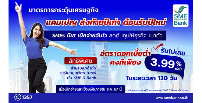 star_borderModal Upgrade PackageModal Upgrade PackageSME D Bank มอบแคมเปญส่งท้ายปี เพื่อเอสเอ็มอีไทย ช่วยลดภาระ มีเงินทุนใช้หมุนเวียนดอกเบี้ยต่ำเพียง 3.99%ต่อปี31 ต.ค. 2567 15:08 น.