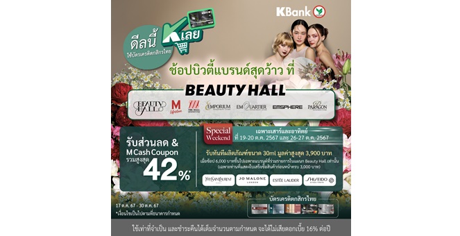star_borderModal Upgrade PackageModal Upgrade Packageบัตรเครดิตกสิกรไทย จับมือ เดอะมอลล์กรุ๊ป จัดโปรแรงชอปบิวตี้แบรนด์สุดคุ้มที่แผนก Beauty Hall รับส่วนลดสูงสุด 42%18 ต.ค. 2567 14:32 น.
