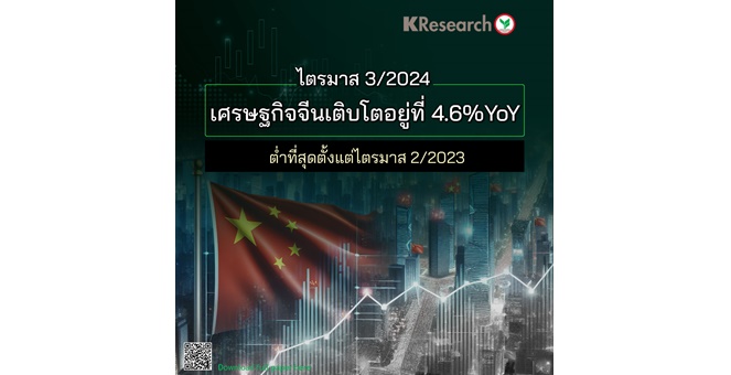 star_borderModal Upgrade PackageModal Upgrade Packageศูนย์วิจัยกสิกรฯ เผยไตรมาส 3/24 เศรษฐกิจจีนเติบโตอยู่ที่ 4.6%YoY ต่ำที่สุดตั้งแต่ไตรมาส 2/2318 ต.ค. 2567 16:53 น.