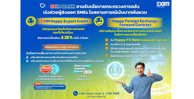 • EXIM BANK ขานรับนโยบายกระทรวงการคลัง เร่งช่วยผู้ส่งออก SMEs ในสถานการณ์เงินบาทผันผวน