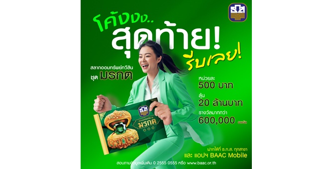 • ทะลุ 1 แสนล้านบาทแล้ว! ยอดฝากสลากออมทรัพย์ทวีสิน ชุดมรกต พร้อมรับฝากอีก 5 หมื่นล้านบาทสุดท้าย ลุ้นรับ 20 ล้านบาท ทุกเดือน