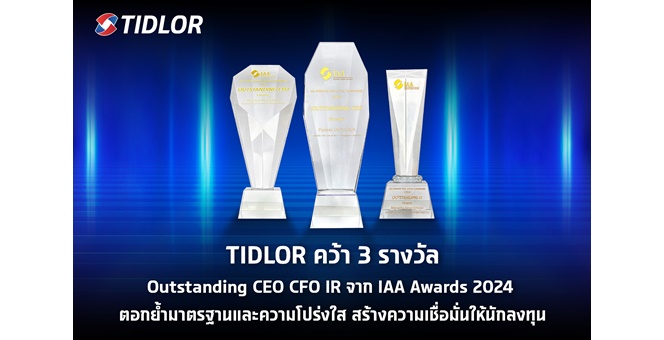 • TIDLOR คว้า 3 รางวัล Outstanding CEO CFO IR จาก IAA Awards 2024 ตอกย้ำมาตรฐานและความโปร่งใส สร้างความเชื่อมั่นให้นักลงทุน
