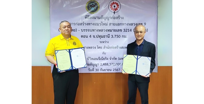 • CIVIL ลงนามสัญญาโครงการก่อสร้างทางแนวใหม่ ตอน 4 จ.ปทุมธานี กรมทางหลวง มูลค่า 2,488.37 ล้านบาท