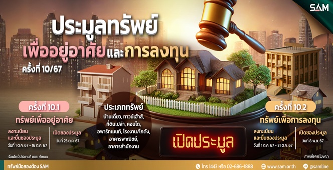 SAM ประเดิมไตรมาสสุดท้ายของปี เปิดประมูลทรัพย์เด่นมูลค่ารวมกว่า 350 ลบ. ทั้งทรัพย์เพื่อที่อยู่อาศัยและการลงทุน รู้ผลทันที 25 ต.ค.และ 8 พ.ย.นี้