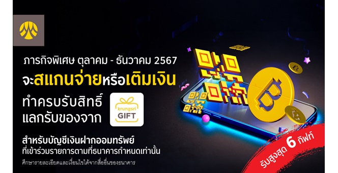 • รับ Krungsri GIFT เมื่อทำภารกิจสแกนจ่าย หรือ เติมเงิน ครบตามกำหนด