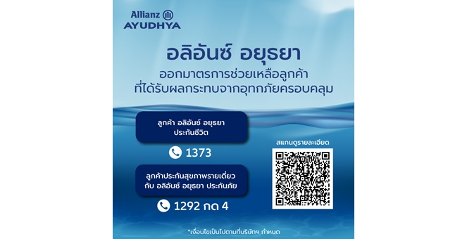 • อลิอันซ์ อยุธยา ออกมาตรการช่วยเหลือลูกค้าผู้เอาประกันภัยในพื้นที่ประสบอุทกภัย