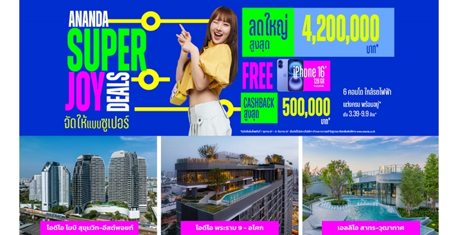 star_borderModal Upgrade PackageModal Upgrade Packageอนันดาฯ ลุยต่อไตรมาส 4 โค้งสุดท้ายปี 67 ส่งดีลซูเปอร์คุ้ม!! หวังให้คนเมืองมีที่อยู่อาศัยง่ายขึ้น กับคอนโด บ้านเดี่ยวและทาวน์โฮม พร้อมอยู่ แต่งครบ ใกล้รถไฟฟ้า8 ต.ค. 2567 15:08 น.