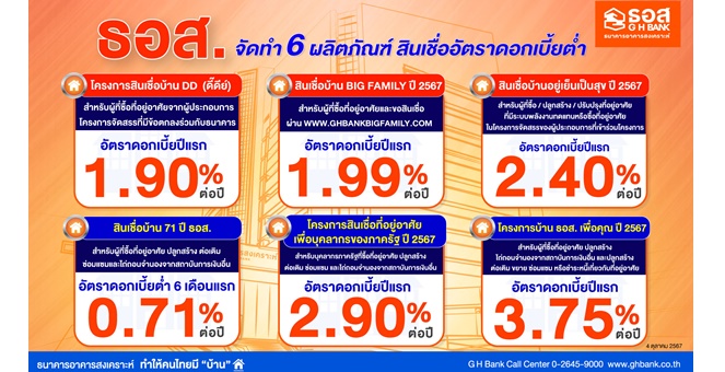 star_borderModal Upgrade PackageModal Upgrade Packageธอส. จัดทำ 6 ผลิตภัณฑ์สินเชื่ออัตราดอกเบี้ยต่ำ เอาใจคนอยากมีบ้านเป็นของตนเอง เริ่มต้นเพียง 1.90% ต่อปี กู้ 1 ล้านบาท ผ่อนชำระเงินงวด 3,000 บาท เท่านั้น!!4 ต.ค. 2567 13:57 น.