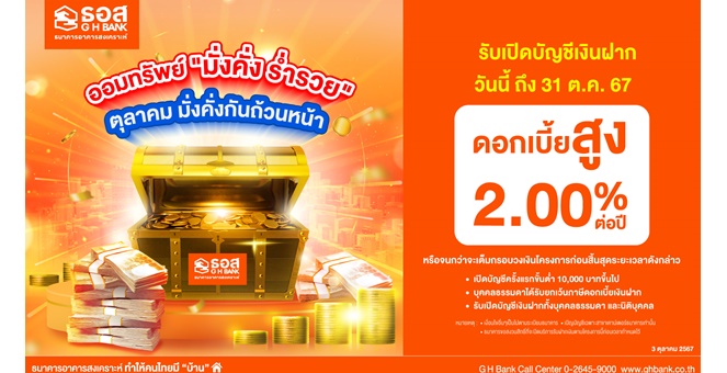 star_borderModal Upgrade PackageModal Upgrade Packageธอส. ชวนออมง่ายๆ ได้ดอกเบี้ยสูงถึง 2.00% ต่อปี กับ “เงินฝากออมทรัพย์มั่งคั่ง ร่ำรวย” เปิดบัญชีได้ตั้งแต่วันนี้ - 31 ตุลาคม 25673 ต.ค. 2567 16:22 น.