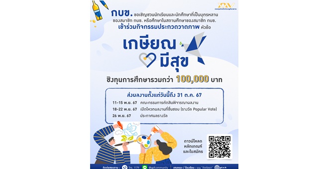 star_borderModal Upgrade PackageModal Upgrade Packageกบข. กระตุ้นเยาวชนรู้จักวางแผนการออมและการลงทุน ผ่านกิจกรรมประกวดวาดภาพ “เกษียณมีสุข” ชิงทุนการศึกษา24 ก.ย. 2567 14:49 น.