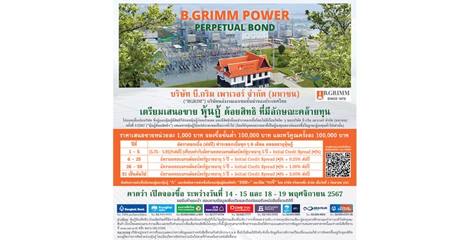 star_borderModal Upgrade PackageModal Upgrade PackageBGRIM เตรียมเสนอขายหุ้นกู้ด้อยสิทธิที่มีลักษณะคล้ายทุนฯ คาดเปิดจองซื้อ 14-15 และ 18-19 พ.ย. นี้ชูดอกเบี้ย 5 ปีแรก [5.75 - 5.95]% ต่อปี จ่ายทุก 6 เดือน ผ่าน 9 สถาบันการเงินชั้นนำ13 ก.ย. 2567 14:04 น.
