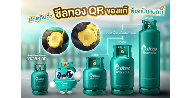 ก๊าซหุงต้ม ปตท. “ดูแลดีที่ 1 ดูที่ซีลทอง” ชวนผู้บริโภคเช็กก่อนซื้อ ของแท้ ต้องมี “ซีลทอง QR” พร้อมรหัส 10 หลัก การันตีคุณภาพ “ปลอดภัย ร้อนไว ไฟแรง!”