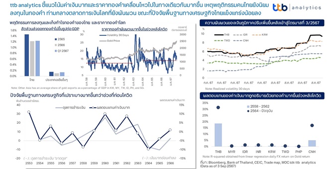 ttb analytics ชี้แนวโน้มค่าเงินบาทและราคาทองคำเคลื่อนไหวไปในทางเดียวกันมากขึ้น